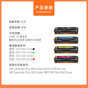 M276nw 1312nfi佳能LBP7100Cn CF210A打印机CP1215 fnw 5050n 1525墨盒CM1415fn 适用131A惠普M251n硒鼓hp200