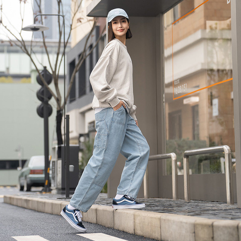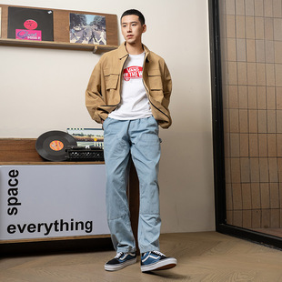 顽刻ollieskate海水蓝春季 校园风W系列翻毛皮帆布男女国潮滑板鞋
