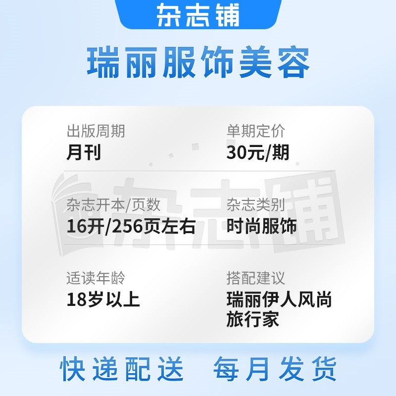 杂志铺 时尚 造型设计穿衣搭配潮流 2026年1月起订 娱乐期刊杂志 搭配 共6期 服装 瑞丽服饰美容杂志订阅 达人美容护肤