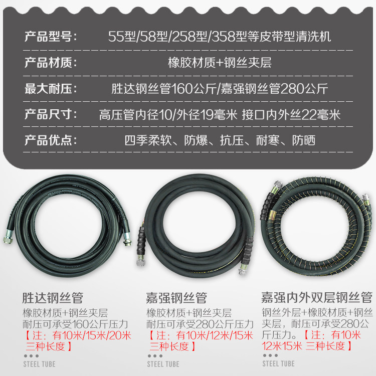 黑猫高压清洗机洗车刷洗车机358型258型55型58胜达出水钢丝管商用