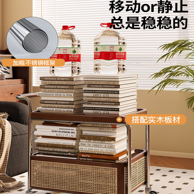 意式 岩板客厅沙发边几可移动简约双层收纳边几角几极简推车小茶几
