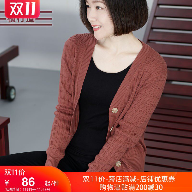 妈妈中年毛U衣女外套针织衫 2021年早秋季 修身 简约长袖 V领纯色开衫