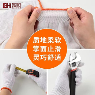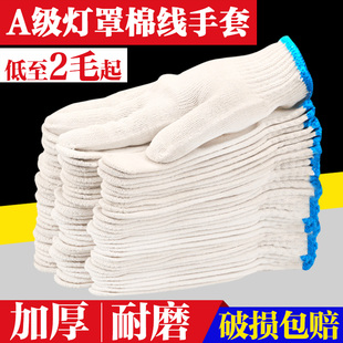 手套工作劳保耐磨棉线黑白纱棉纱防滑尼龙劳工劳动男工地干活轻薄