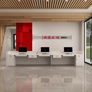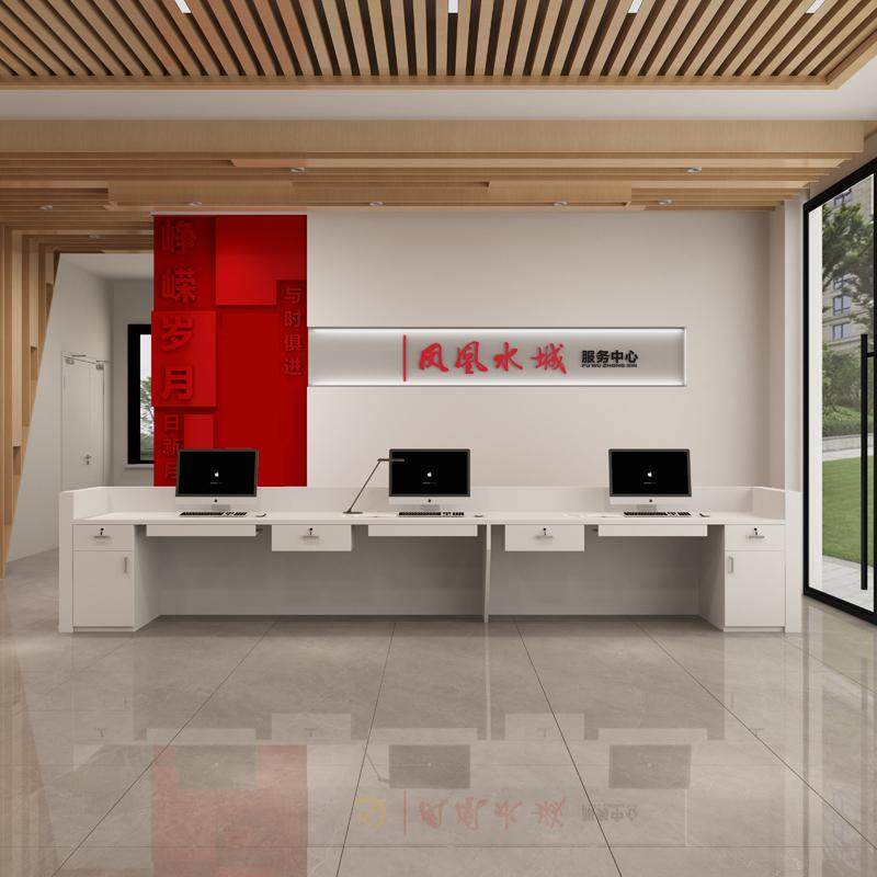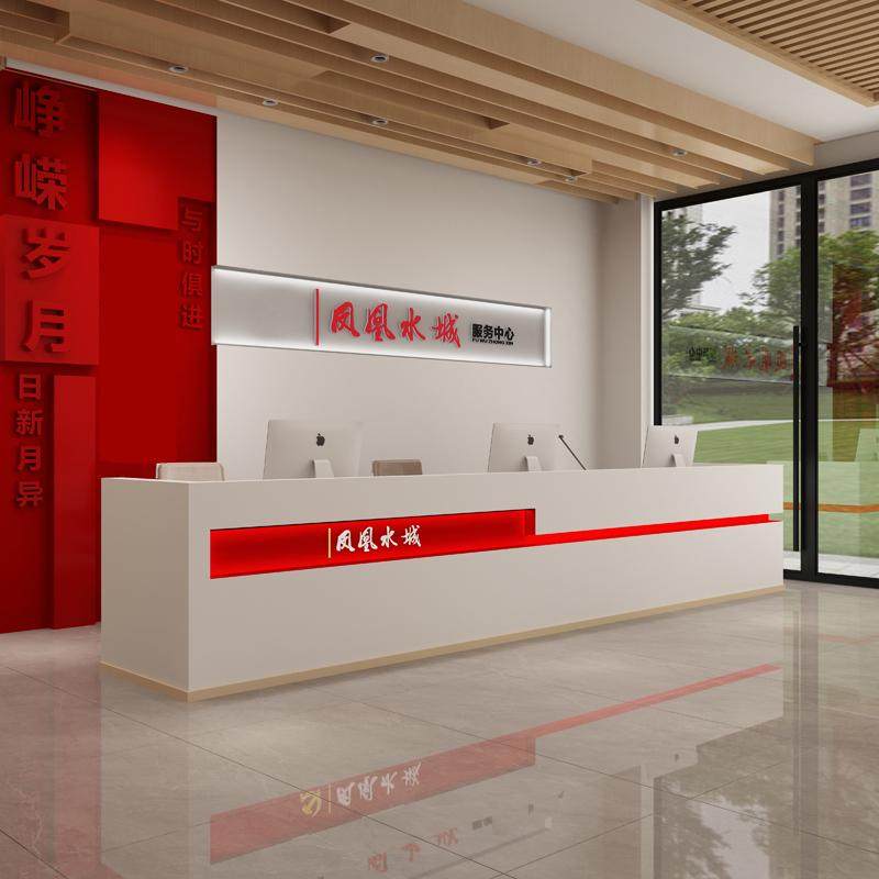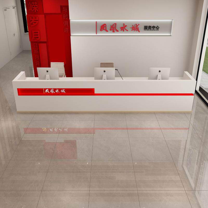 公司前台红色烤漆接待台美容院吧台收银台景区服务台物业柜台定做