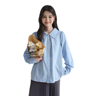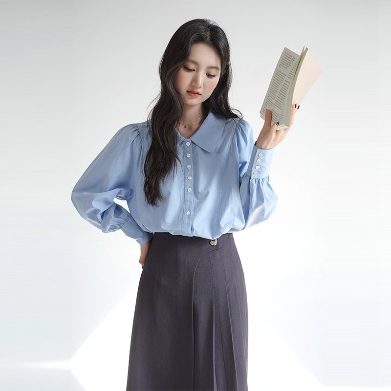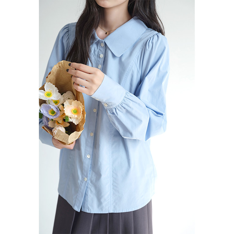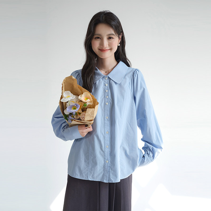 女装 2026春装 法式 翻领衬衫 宽松减龄显瘦上衣 复古泡泡袖 蓝若水大码