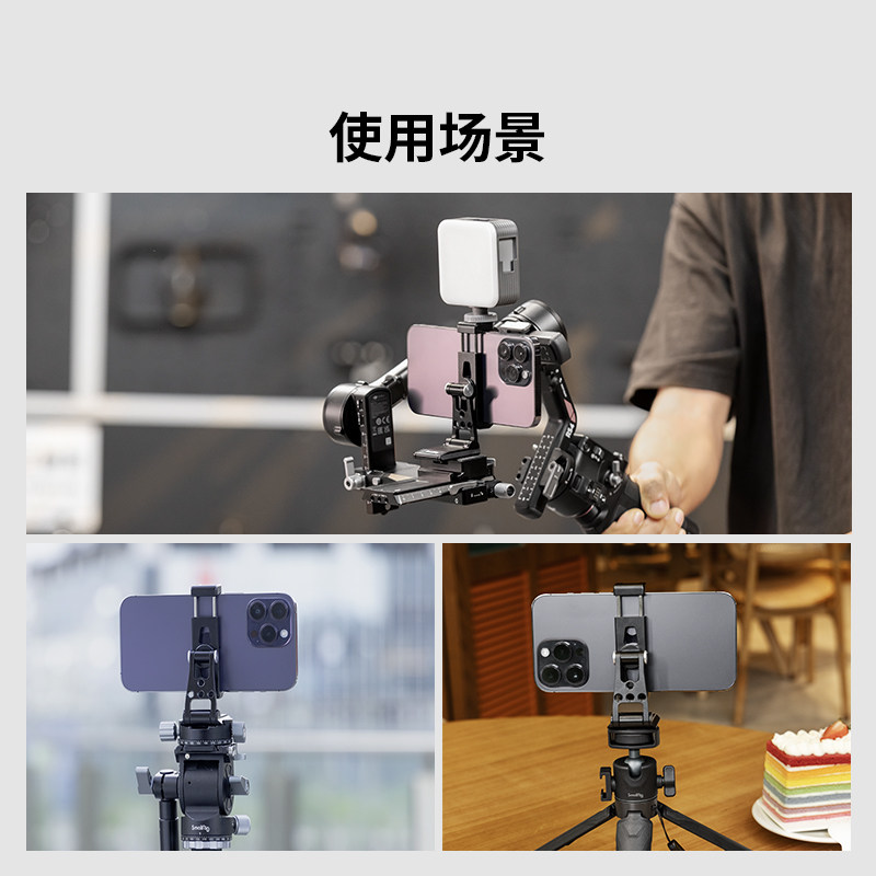 斯莫格横竖拍金属冷靴手机夹适用苹果 大疆RS稳定器手机固定器支架相机热靴手机架子监视器阿卡手机夹 安卓