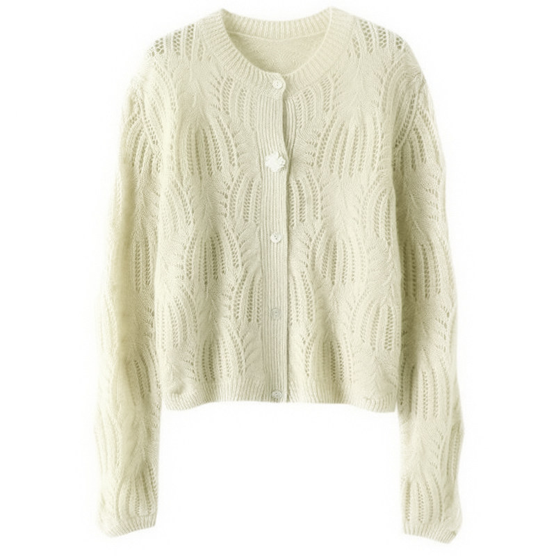 外套秋冬新款 女纯羊绒毛衣镂空针织开衫 花朵扣羊绒开衫 太美了吧