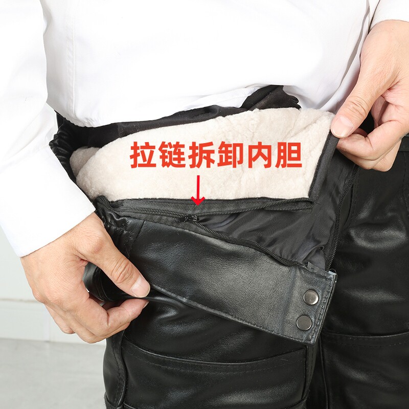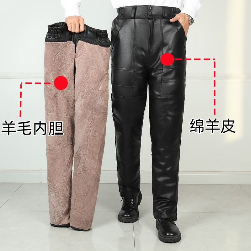 加绒加厚保暖中老年皮毛一体裤 冬季 子抗风 男羊皮羊毛棉裤 真皮皮裤