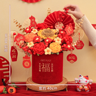 乔迁之喜新房搬家开业装 饰针织向日葵毛线花家居桌面假花暖房礼物