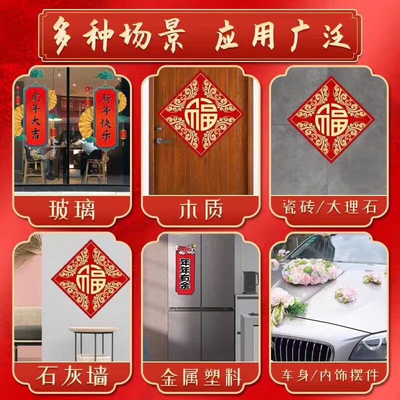 新年对联贴纸2026新款 春节福字门贴创意家用黑字春联入户门联布置