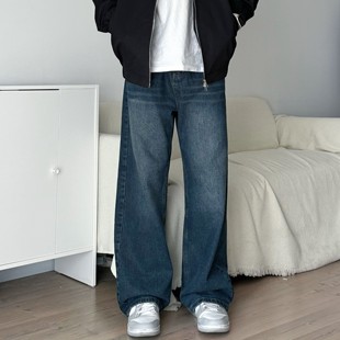 阿XIAN 男士 美式 2025新款 潮牌宽松休闲长裤 做旧水洗直筒牛仔裤