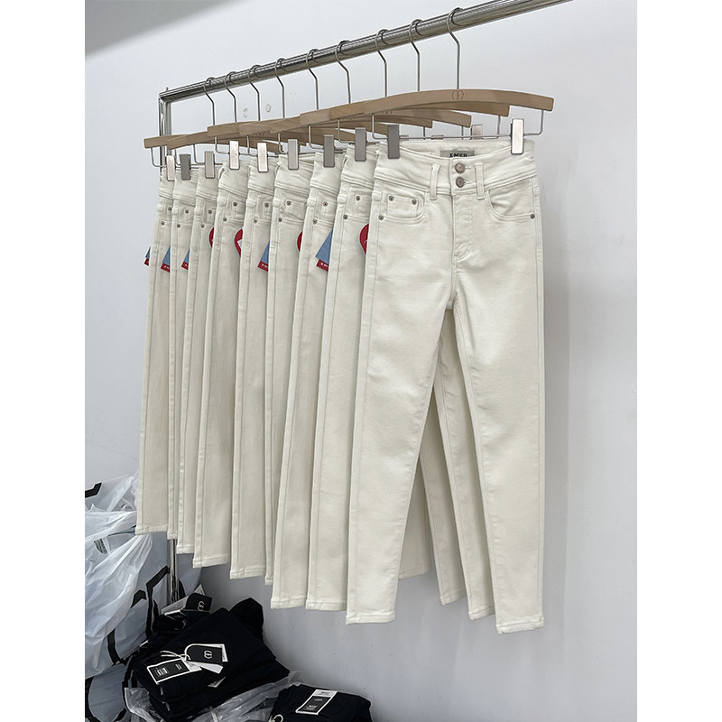 ins女 加绒小脚显瘦紧身排扣铅笔裤 超高腰牛仔裤 女2025年秋冬新款