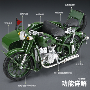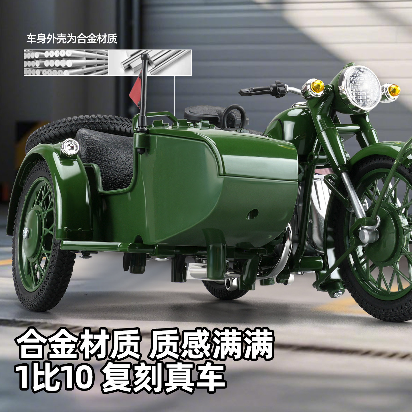 长江750边三轮带斗侉子摩托车模型1 10合金仿真军事车模摆件收藏
