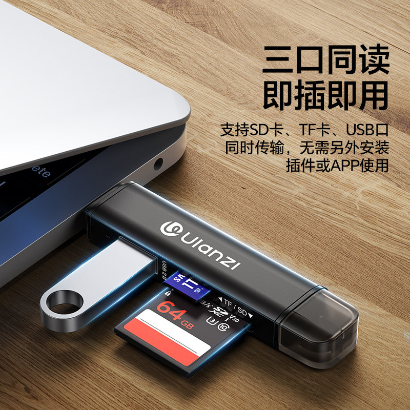 Ulanzi优篮子 typec兼容手机平板电脑多合一ccd读取器 CR1三合一相机读卡器sd卡tf卡高速内存存储卡转换器usb
