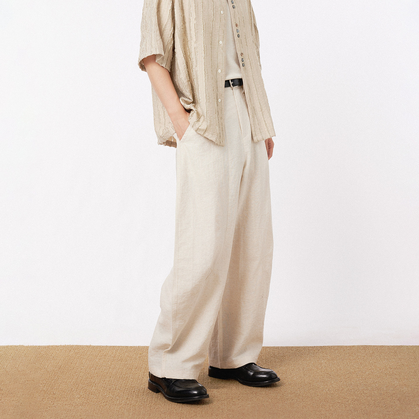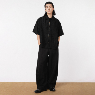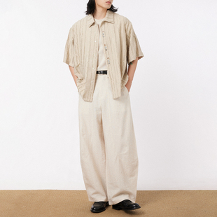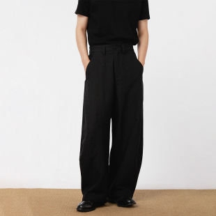 宽松垂感廓形休闲直筒裤 男高级感 简约亚麻解构阔腿西裤 三木公白