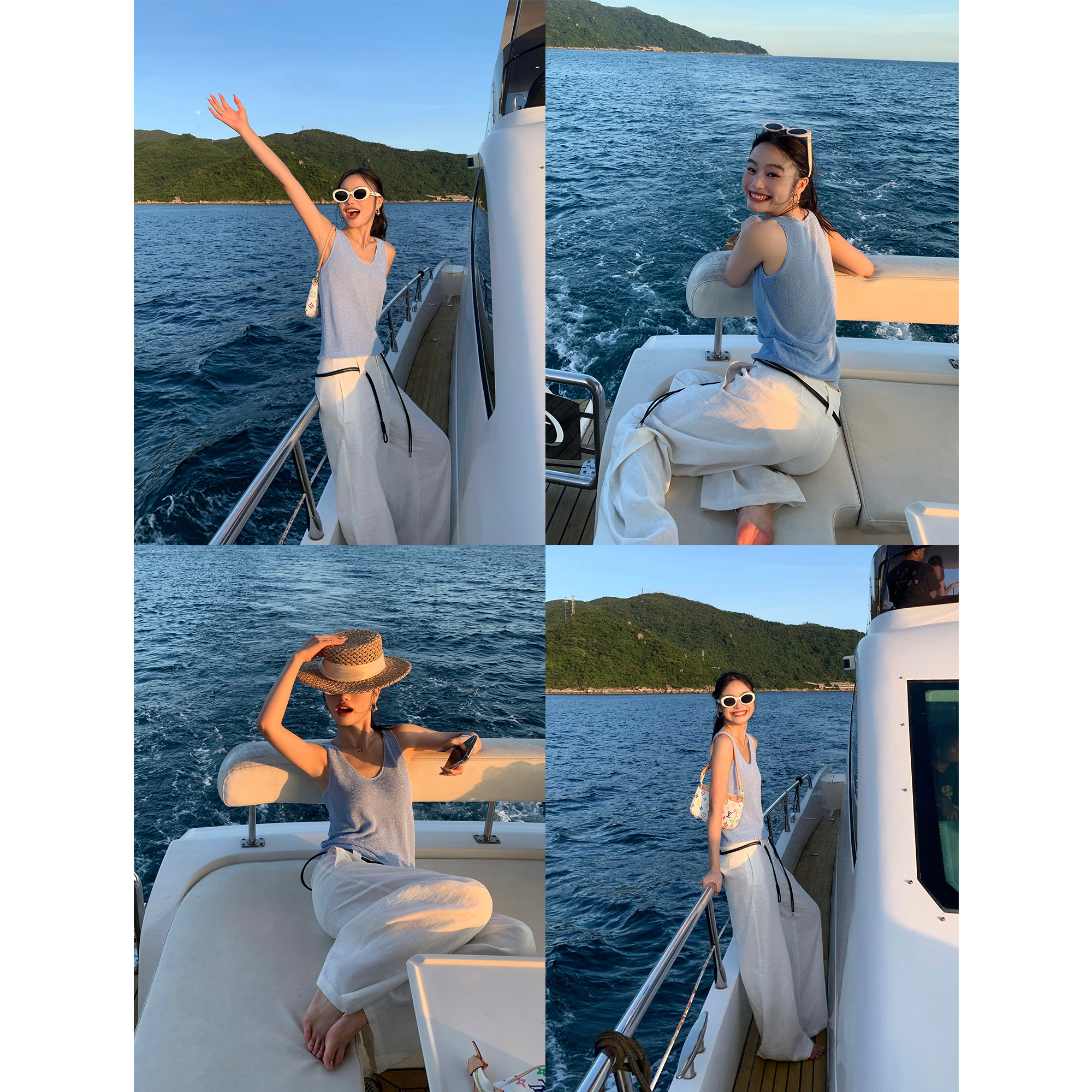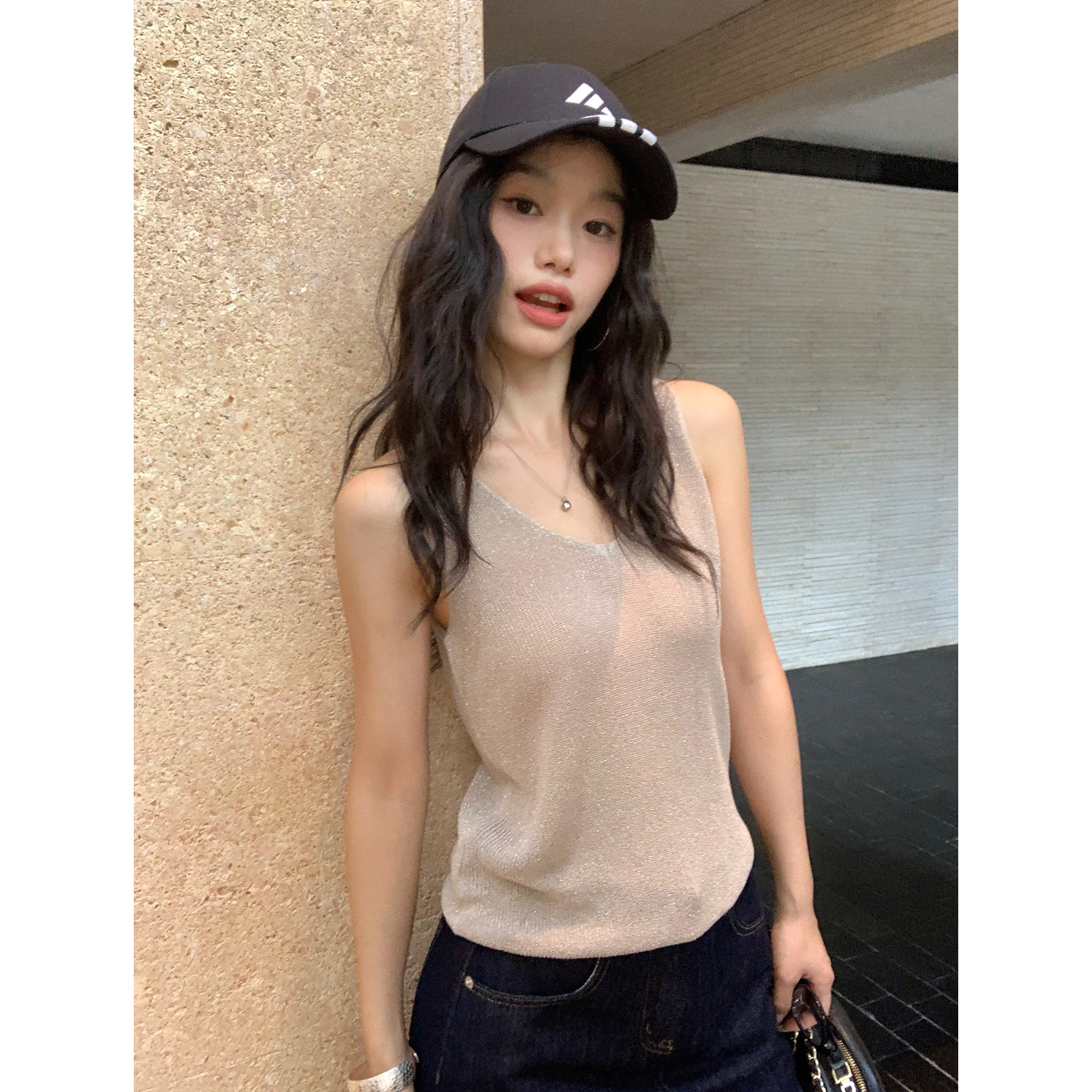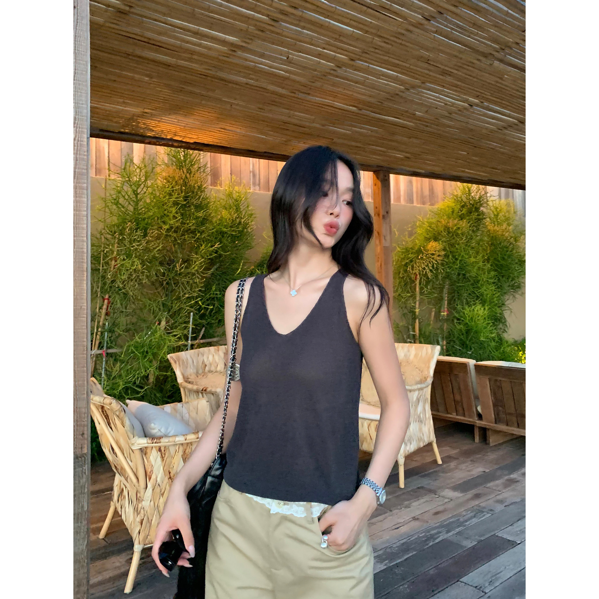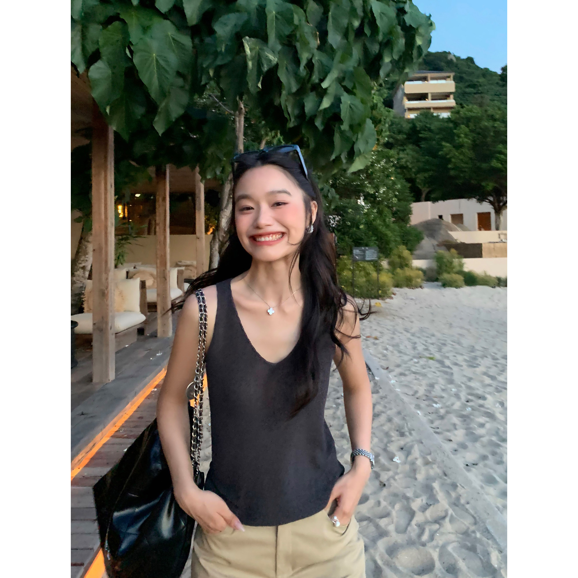 外穿坎肩宽松无袖 V领吊带背心女夏薄款 针织上衣 松弛感 pusumede