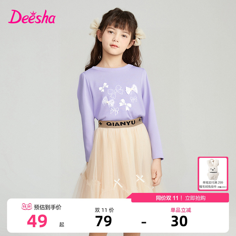新款 t恤春秋季 女孩儿童甜美蝴蝶结百搭上衣 女童长袖 笛莎官旗童装