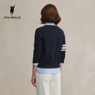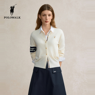 女式 长袖 针织衫 POLOWALK女装 TB风针织开衫 新品 时尚 上衣 2025秋季