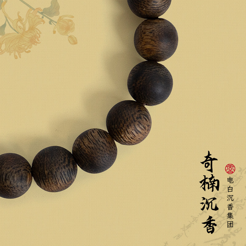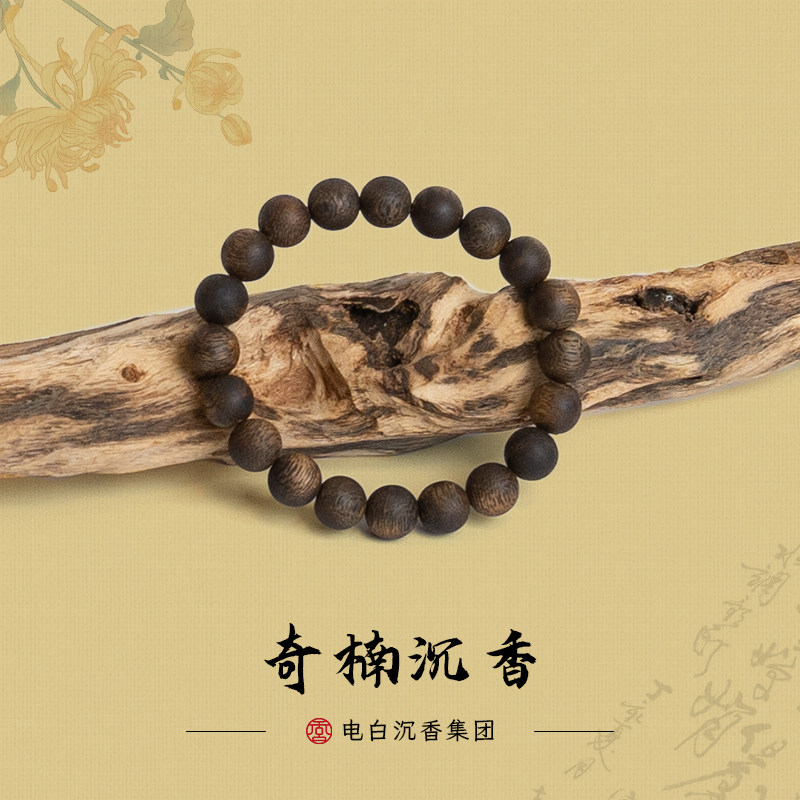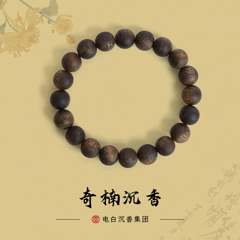 奇楠沉香透顶绿树心油沉水浮圆珠单圈手串10mm 电白沉香集团