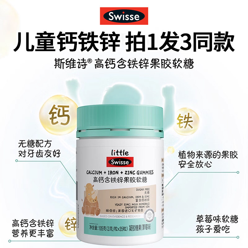 Swisse斯维诗钙铁锌儿童小孩青少年高钙成长营养钙片软糖官方正品