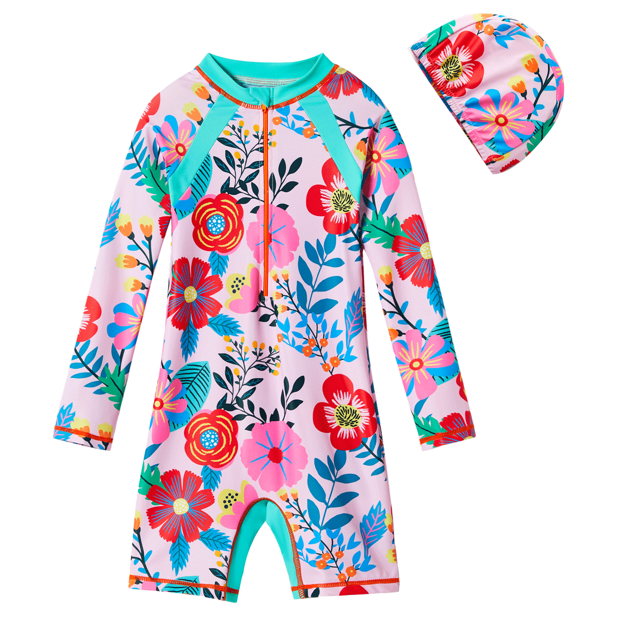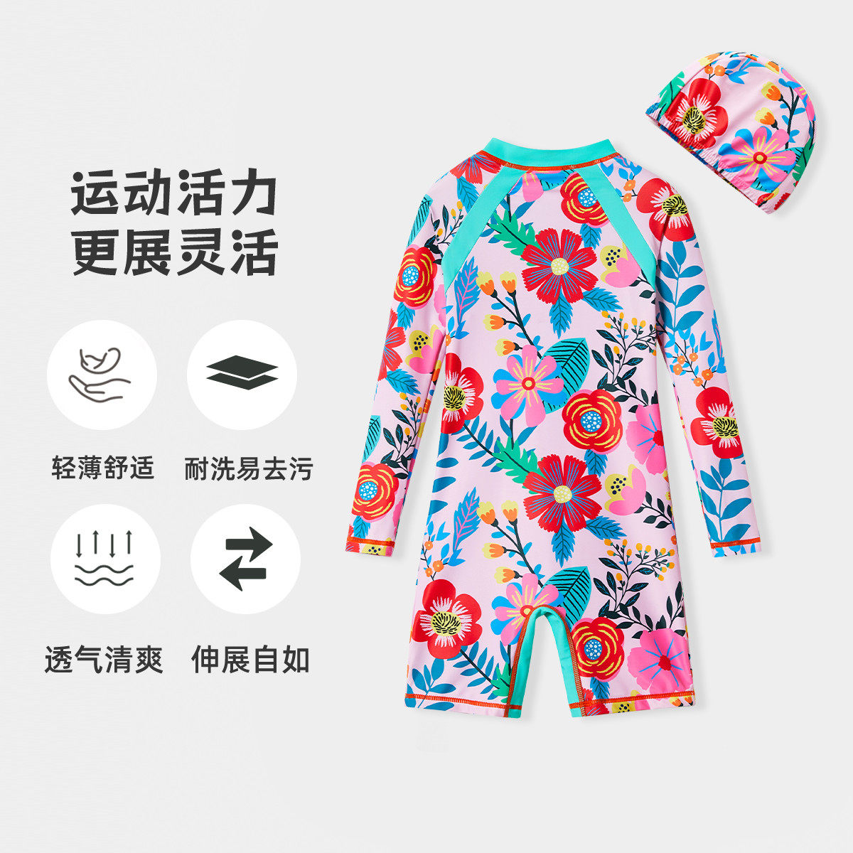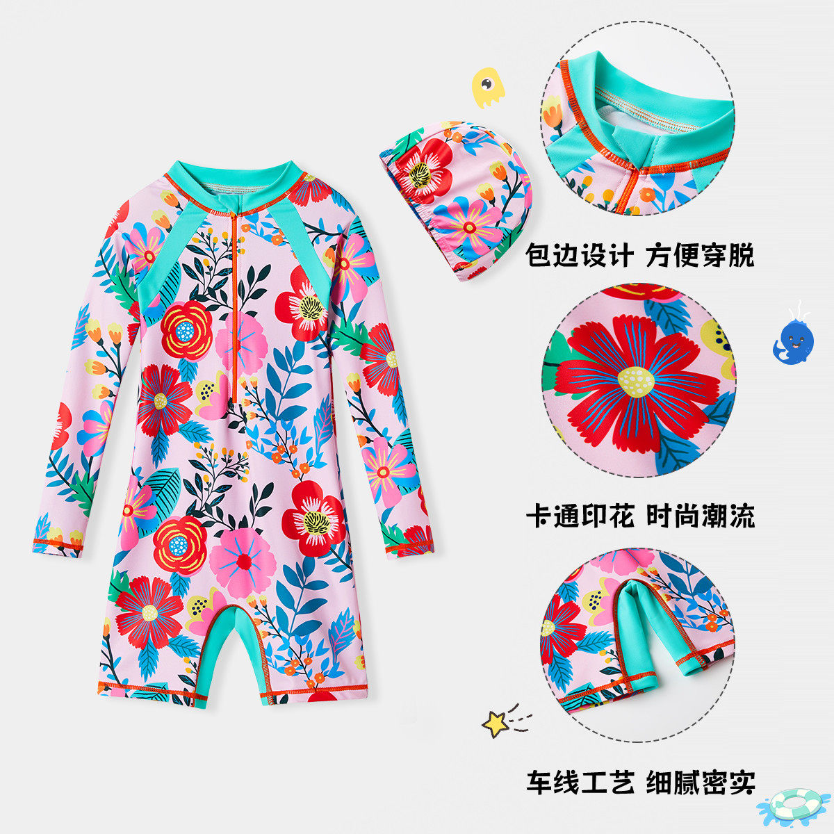 泳裤 连体式 中大童满印长袖 ask泳帽女童泳衣2025夏季