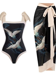 两件套泳装 遇见泳衣女2025新款 罩衫 连体性感钢托聚拢长袖 黑色 爆款