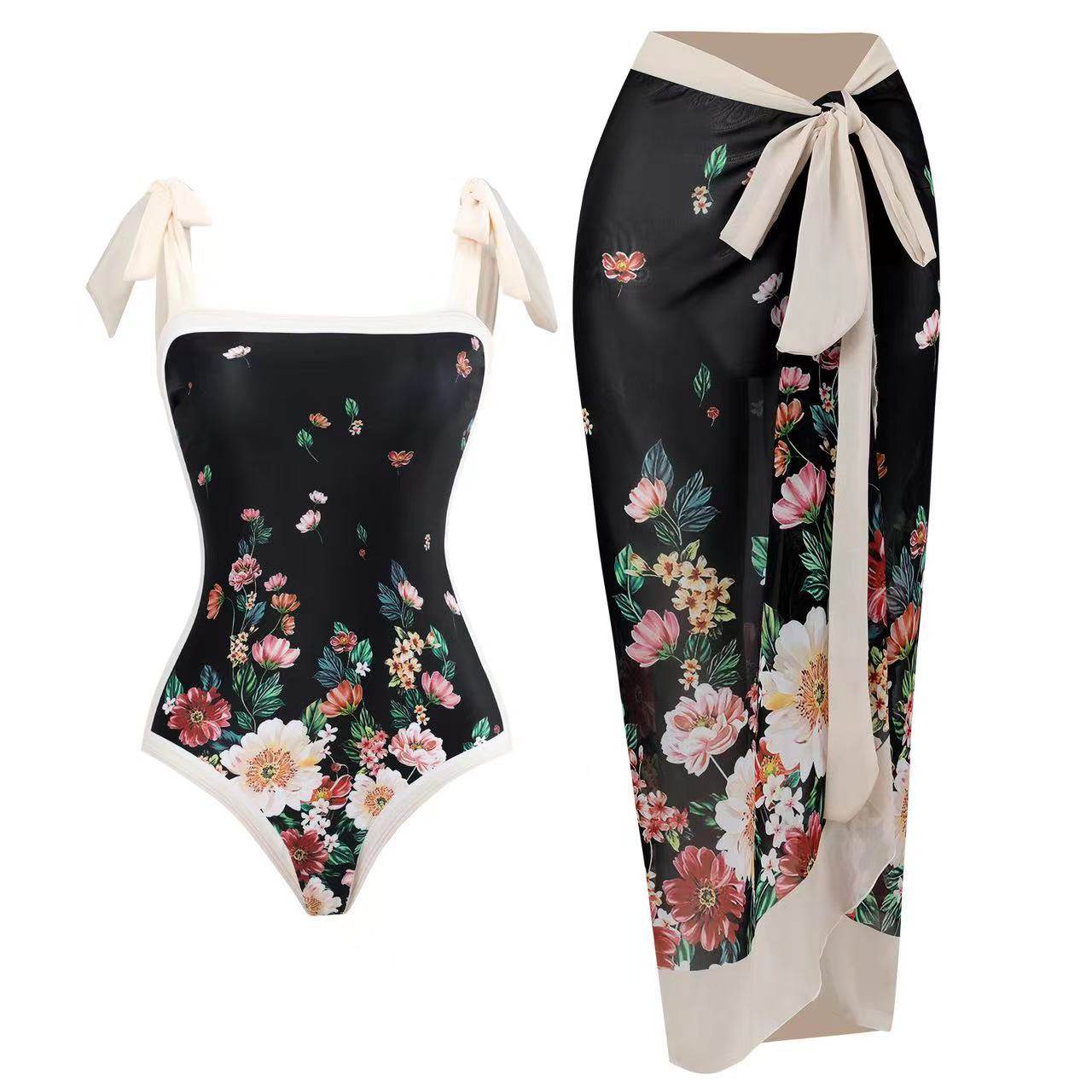 atlanticbeach法式 复古泳衣女泡温泉度假连体性感露背显瘦高级感