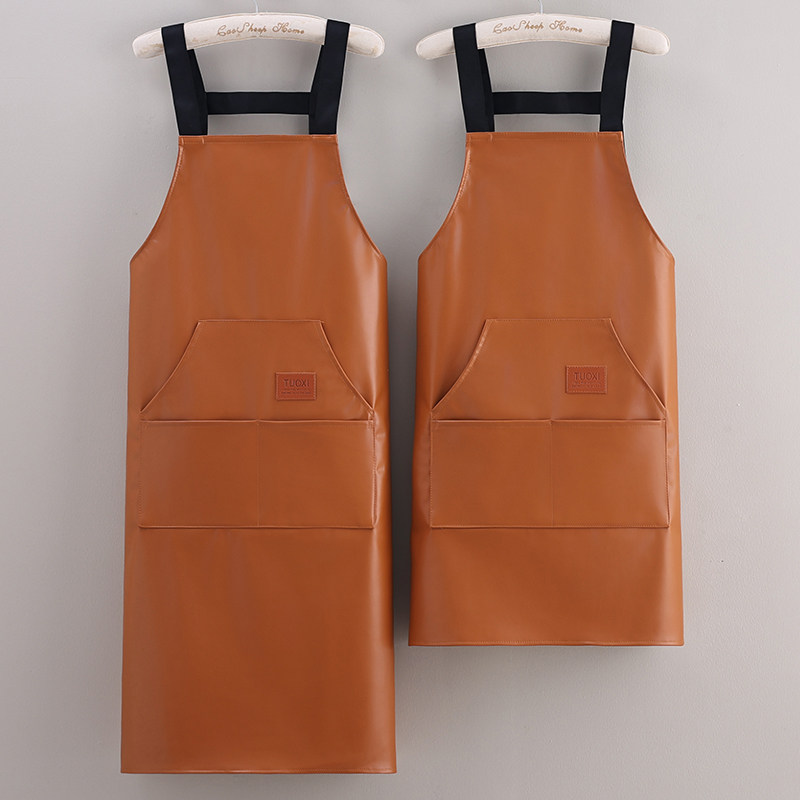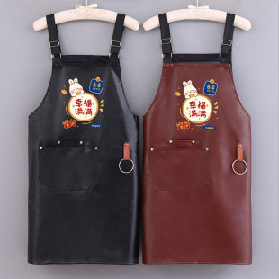 简约韩版 PU软皮革水产杀鱼餐饮专用耐磨防水防油围裙工作 2024时尚