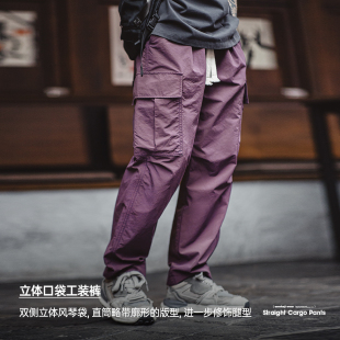 户外宽松直筒裤 马登工装 美拉德薄款 复古多口袋防水休闲裤 男春 美式