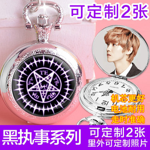 动漫翻盖复古怀表项链黑执事cos契约夏尔赛巴斯手表 定制照片