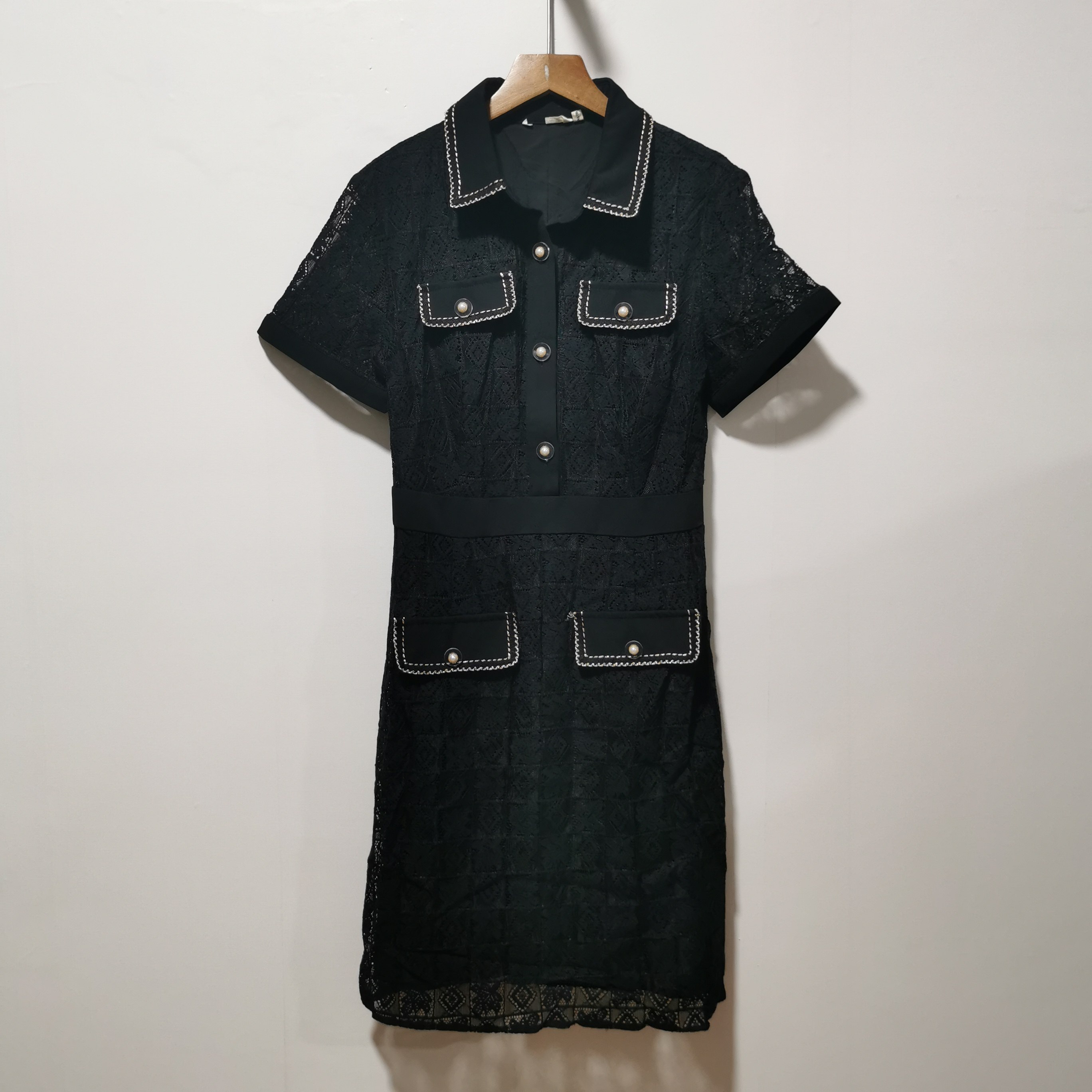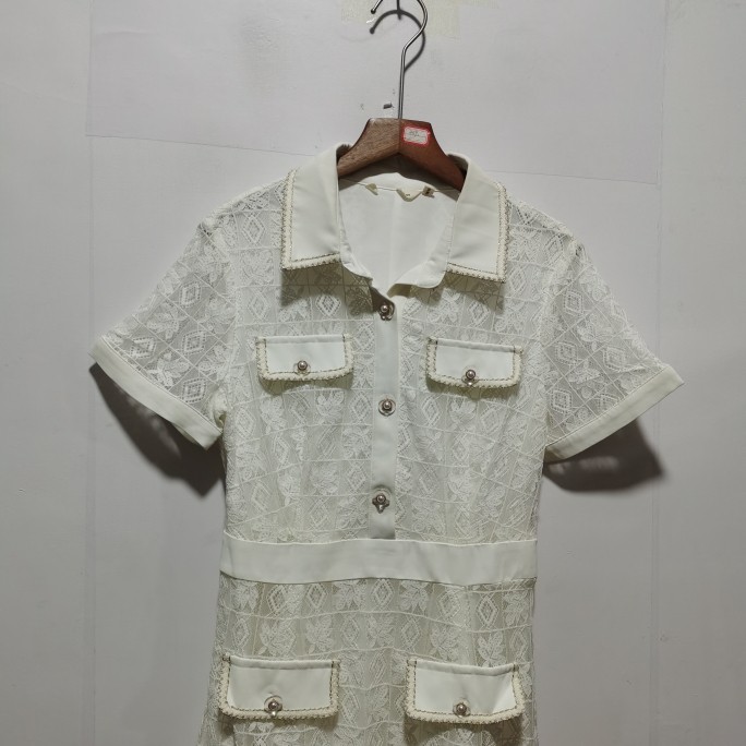 艺系列去标春夏新款 蕾丝拼接连衣裙L216 清新淑女田园风翻领中长款