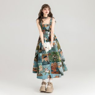 度假掐腰背带长裙子 法式 KEIKO 高端提花油画风吊带连衣裙2026夏季