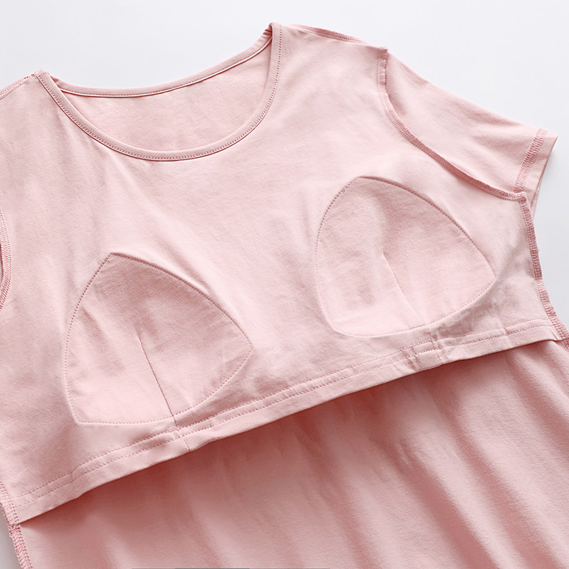 防凸点带胸垫可外穿短袖 T恤棉内衣一体上衣妈妈