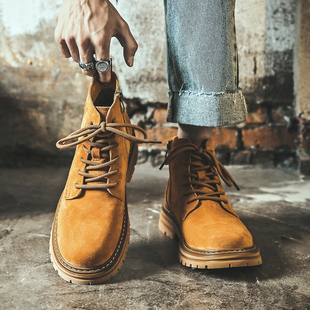男靴 高帮秋冬潮流皮靴户外马丁靴英伦风加绒工装 HLA 海澜之家男鞋