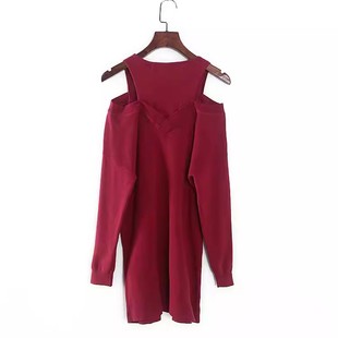 库存折扣大红色拼接毛衫 专柜女装 连衣裙Y5028 春秋新款 香蕉系列
