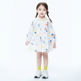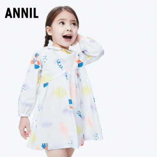 连衣裙秋款 女童梭织长袖 宝宝纯棉A字裙 安奈儿童装 商场同款
