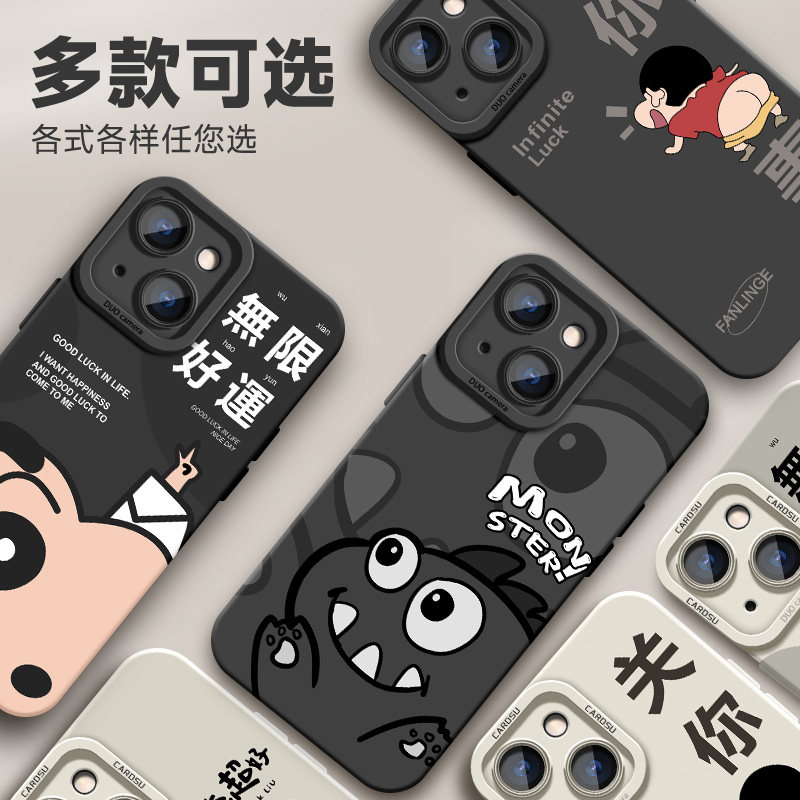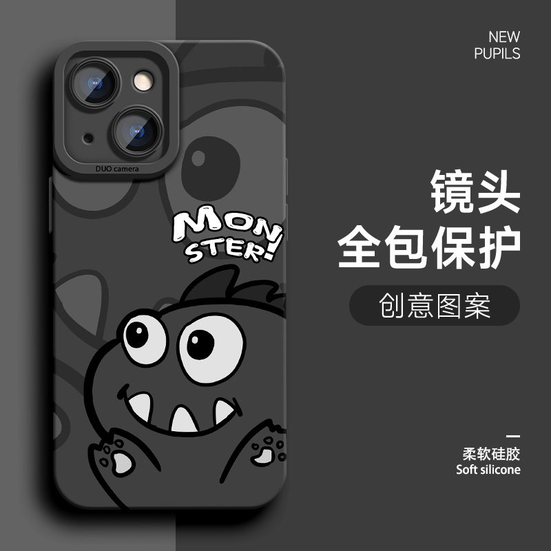 适用于苹果15手机壳新款 14Pro天使眼13潮牌iPhone12液态硅胶软壳11promax全包防摔男卡通文字石墨色保护套