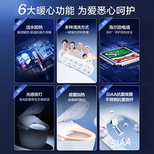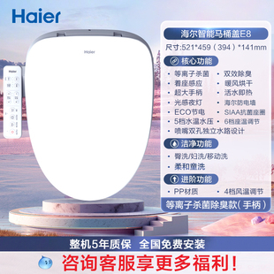 Haier 冲洗暖风烘干除臭夜灯 海尔智能马桶盖E8电动加热家用即热式