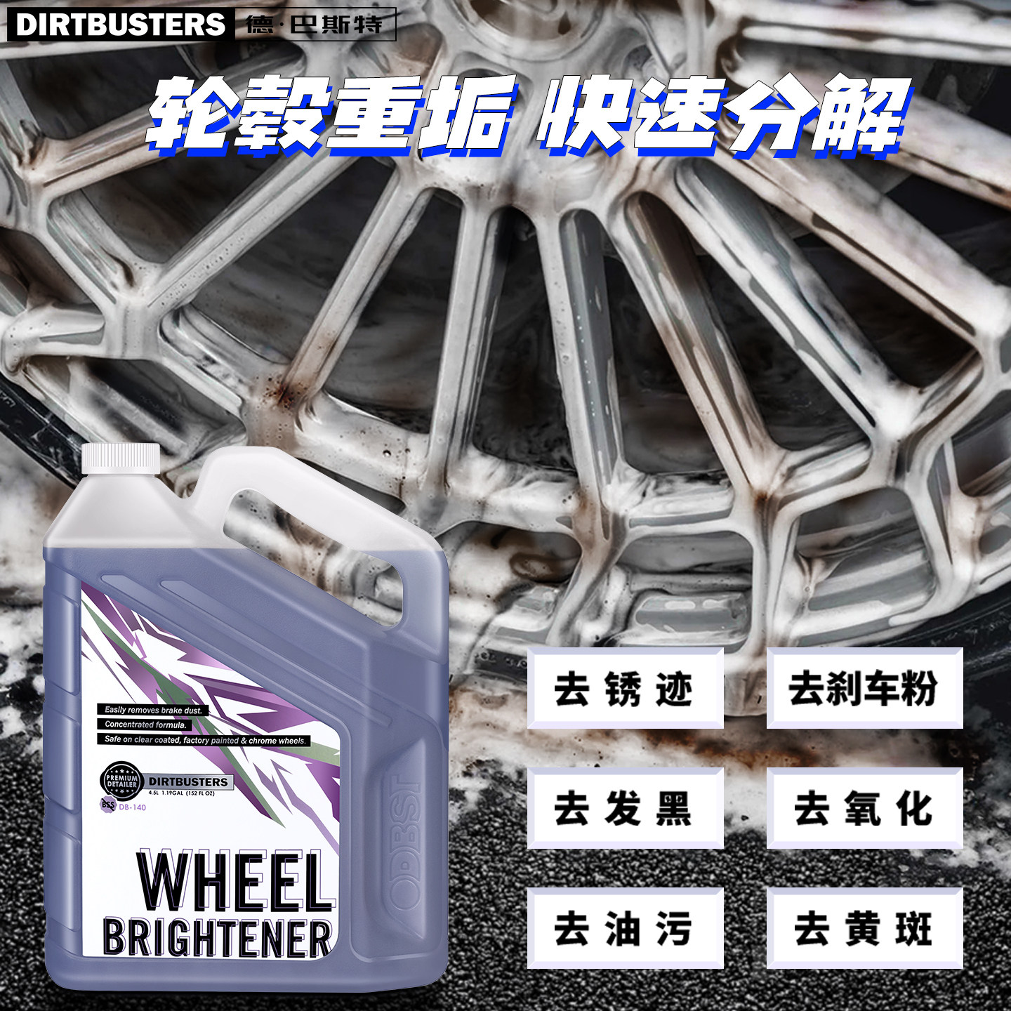 140进口 DIRTBUSTERS德巴斯特 WB烈焰紫云闪亮魔法轮毂清洗剂