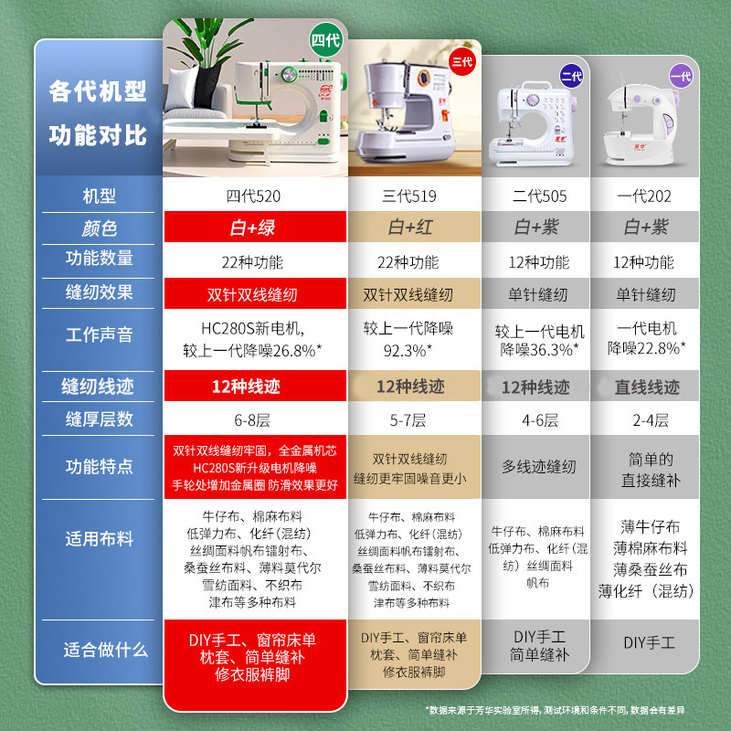 芳华新款 电动缝纫机家用小型全自动吃厚锁边多功能全自动缝纫神器