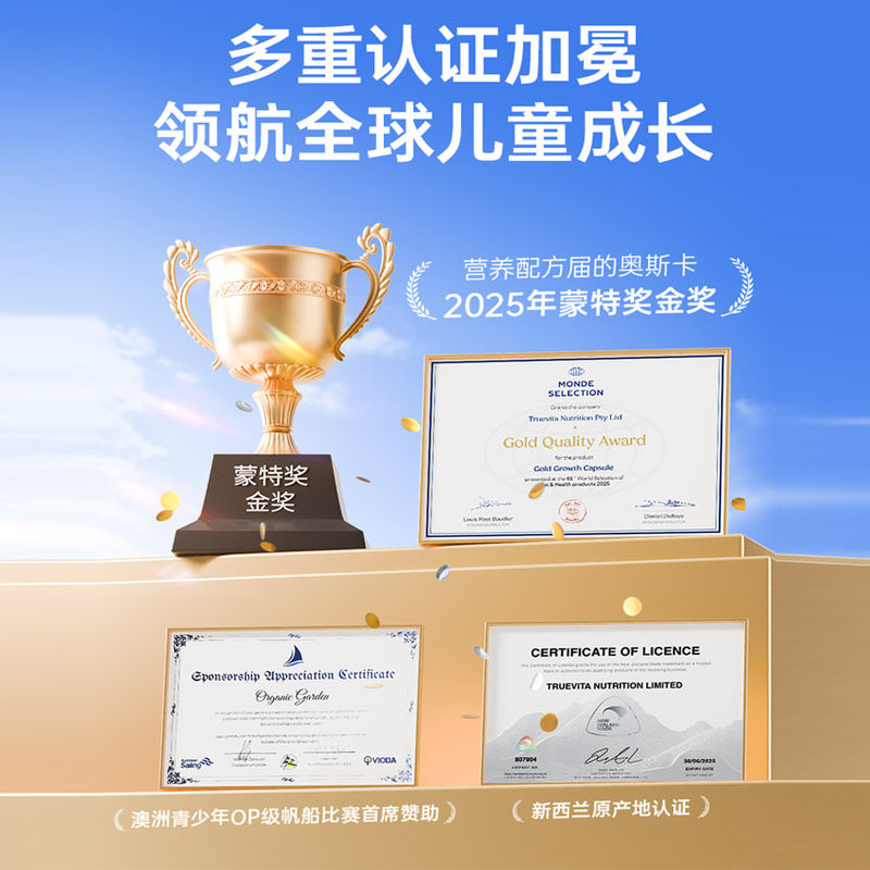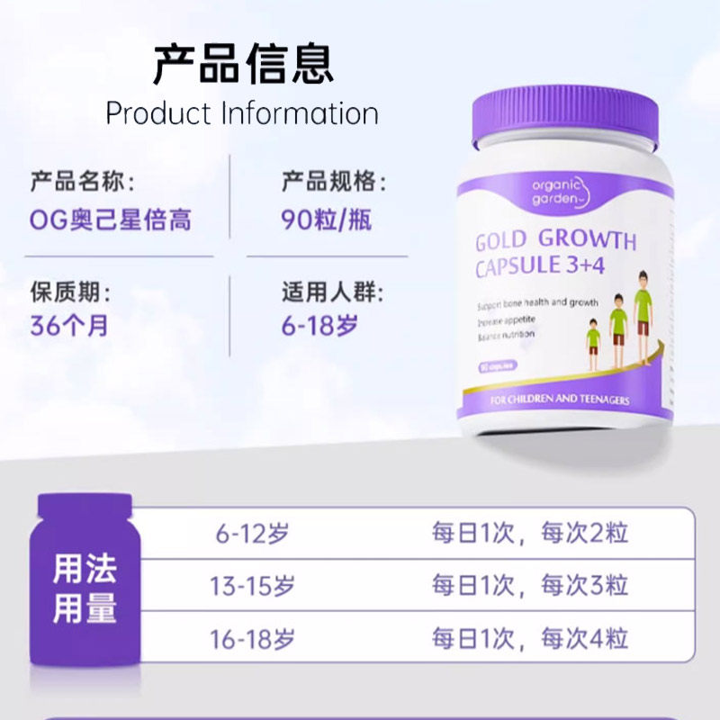 OG奥己成长胶囊维生素d3k2钙镁锌生长素青少年钙90 3瓶 自营