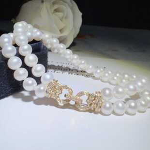 小米珠双串珠链扣18K金钻石DIY双排扣三排扣子珍珠扣手链项链扣头