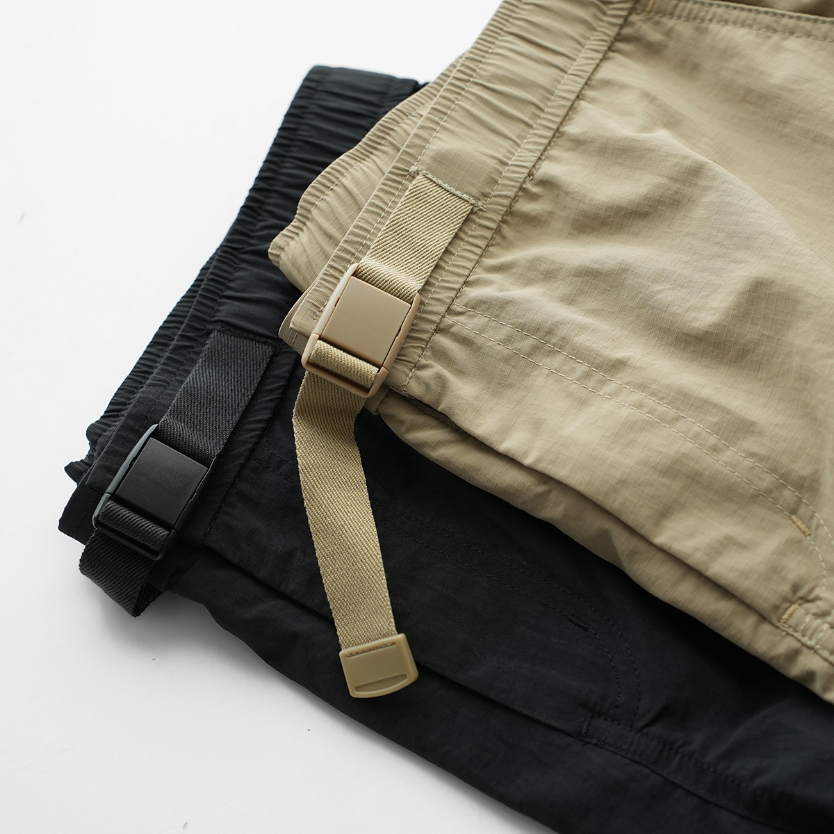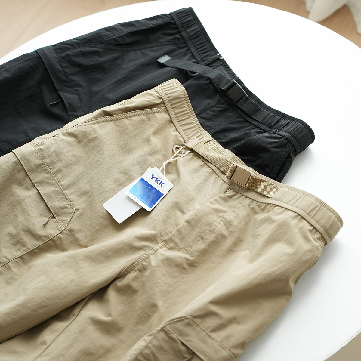 运动休闲短裤 锦纶轻薄透气侧口袋 五分裤 带腰带工装 男士