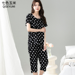 人造棉家居服两件套 短袖 妈妈棉绸睡衣女夏中老年人绵绸套装 薄款