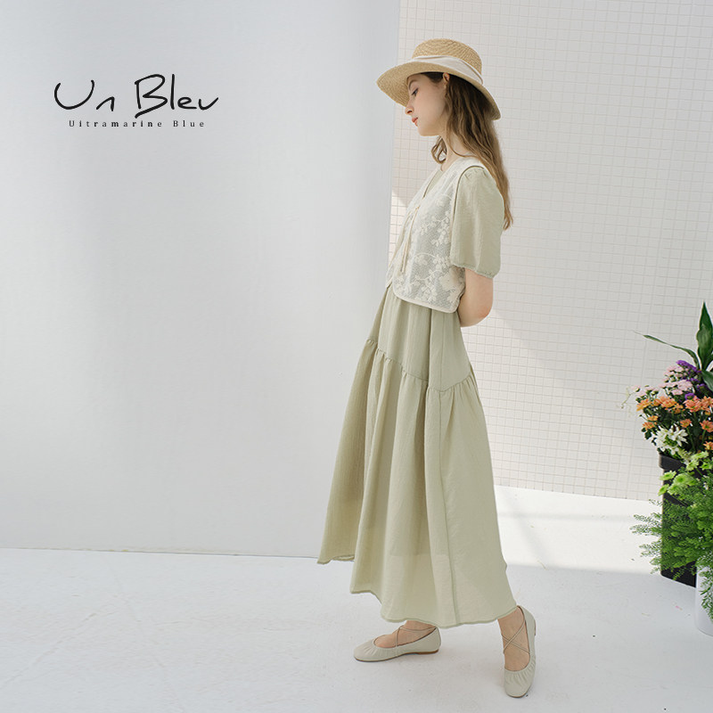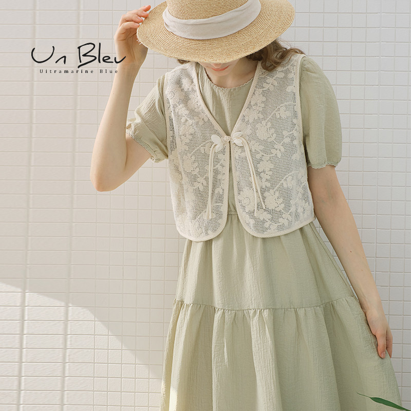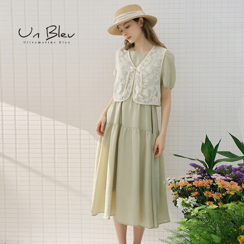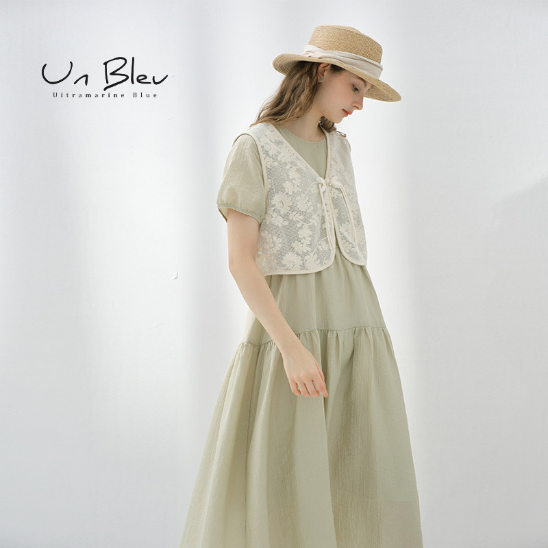 女装 时尚 蕾丝马甲两件套裙子 新款 UnBleu民族风连衣裙女夏季