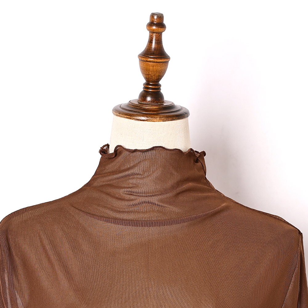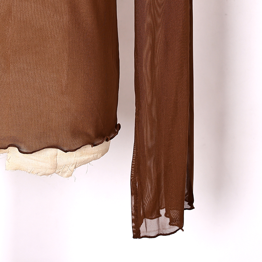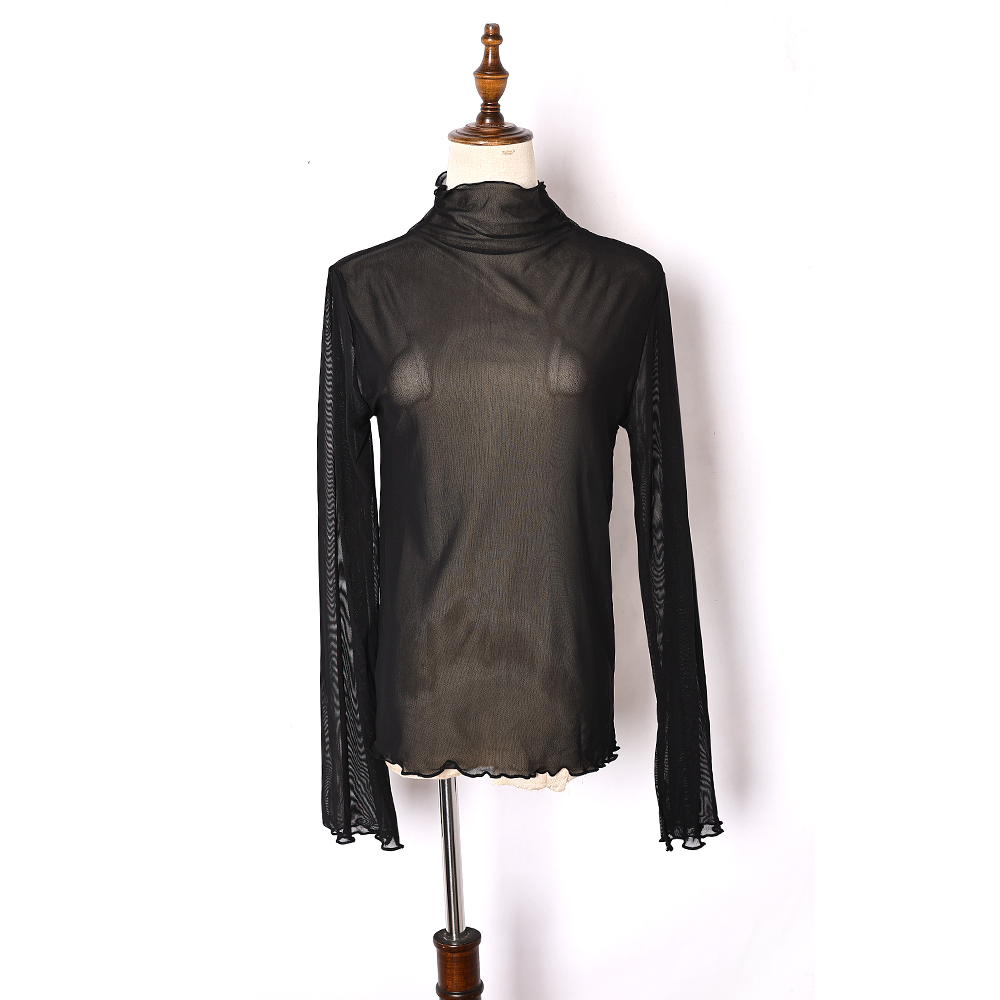 女式 喇叭袖 性感网纱透视长袖 时尚 百搭纯色罩衣 打底衫 2024年春夏季