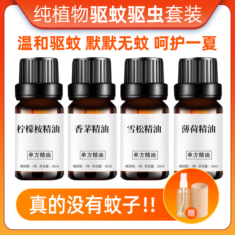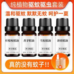 纯香茅精油驱蚊柠檬桉雪松薄荷精油天然植物驱虫净化空气4瓶组合