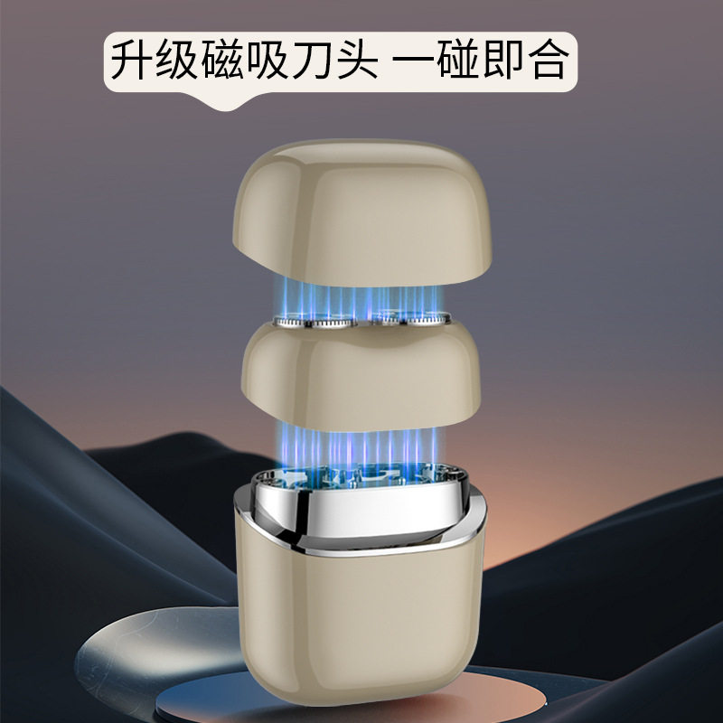 高档便携式 迷你电动剃须刀磁吸浮动双刀头车载刮胡须刀全身水洗