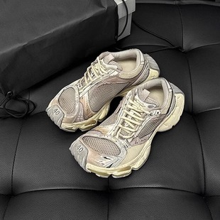 2025秋季 骆驼女鞋 新款 休闲加绒老爹鞋 女 厚底增高银色运动鞋 银熠
