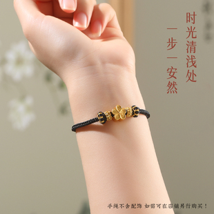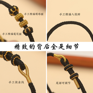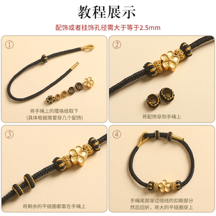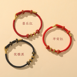 本命年红绳手链女黑色手绳diy可穿珠串黄金编织路路通转运珠男士